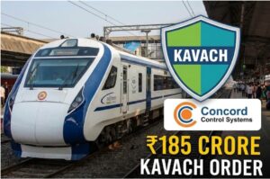 Concord Control Systems has secured a ₹185.09 crore contract to install KAVACH 4.0 onboard safety systems in Indian Railways locomotives. Executed through Progota India Pvt Ltd, the 12-month project will enhance train protection using advanced communication and collision-avoidance technology. The order strengthens India’s railway safety mission under Gati Shakti and boosts indigenous railway innovation.