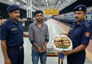 Railway Police in Agartala arrested a drug peddler carrying 2.56 kg of cannabis during a joint operation by GRP and RPF. The suspect was caught near the station parking area following a tip-off. A case has been registered under the NDPS Act, highlighting intensified efforts by railway authorities to prevent illegal drug trafficking through railway routes.